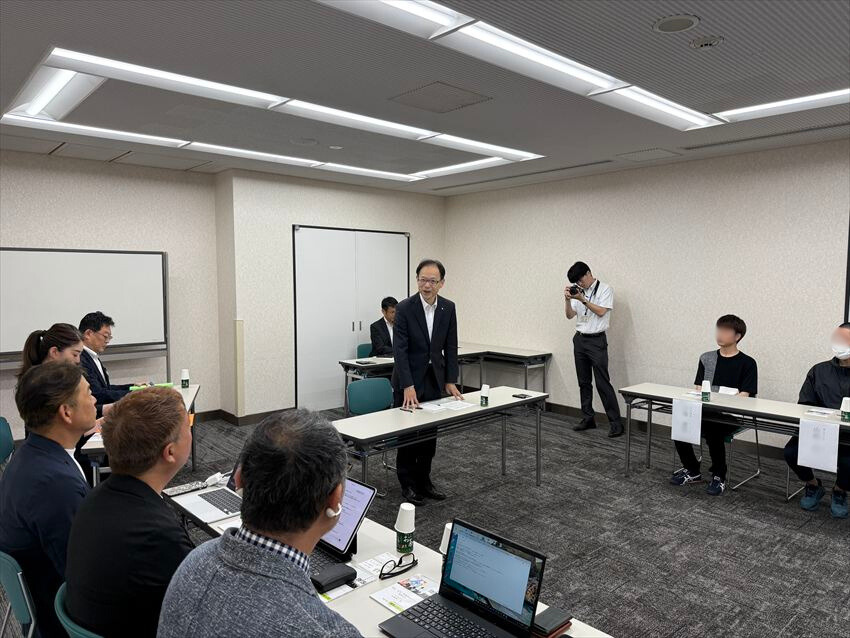 当日は知事のご挨拶のあと、カムラックおおいた髙森代表より今回の場への御礼の言葉を、カムラックグループの賀村会長からはグループ全体の活動や会社概要について説明させていただき、その後、スタッフやメンバーさん全員が自己紹介を行いました。